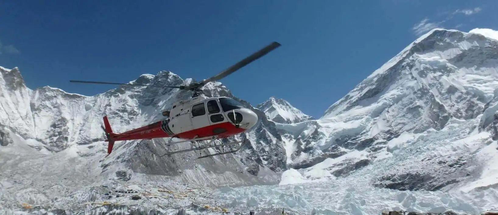 Arriving at the airport, you’ll complete your flight preparation. Our team will check passports, tickets, weight checks, airport boarding passes, and permits (handled by our operators), and guide you to the departure point. Once everything is set, you’ll board the helicopter for your morning flights toward the mountains.